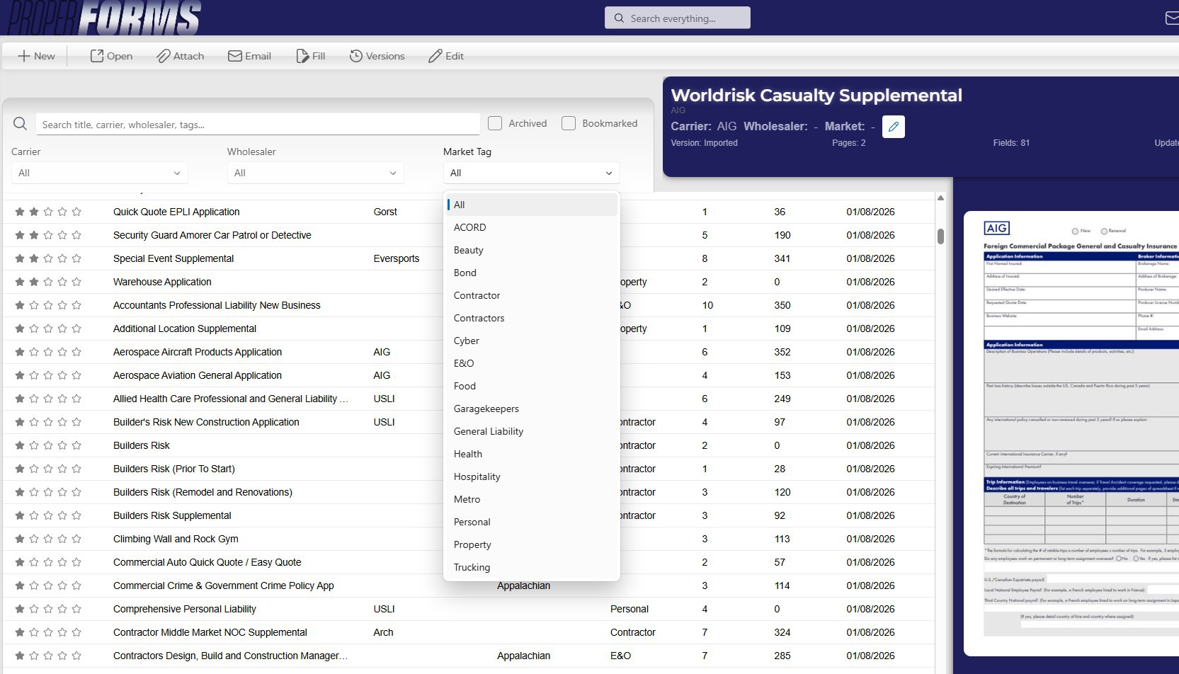 The new Forms Library centralizes applications, supplementals, and worksheets in one place. Users can manage revisions, attach forms to clients, prefill data, and keep every version organized and accessible.